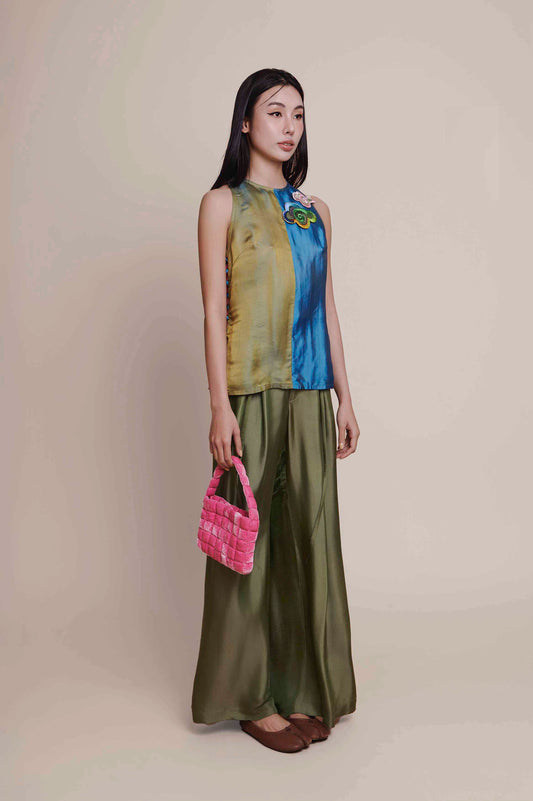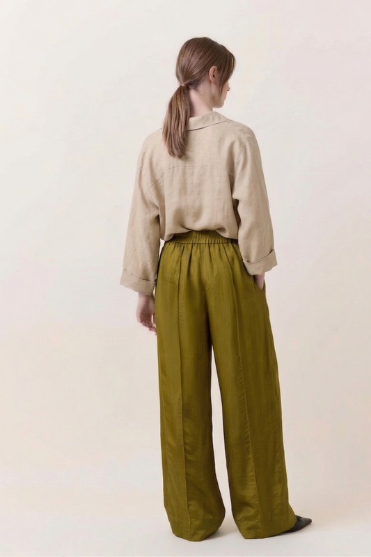 Olive Green Silk Trousers - Wide Legs Silk Pants
