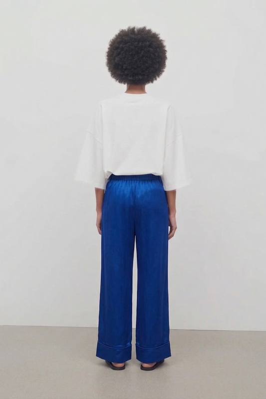 Royal Blue Silk Trousers - Wide Legs Silk Pants