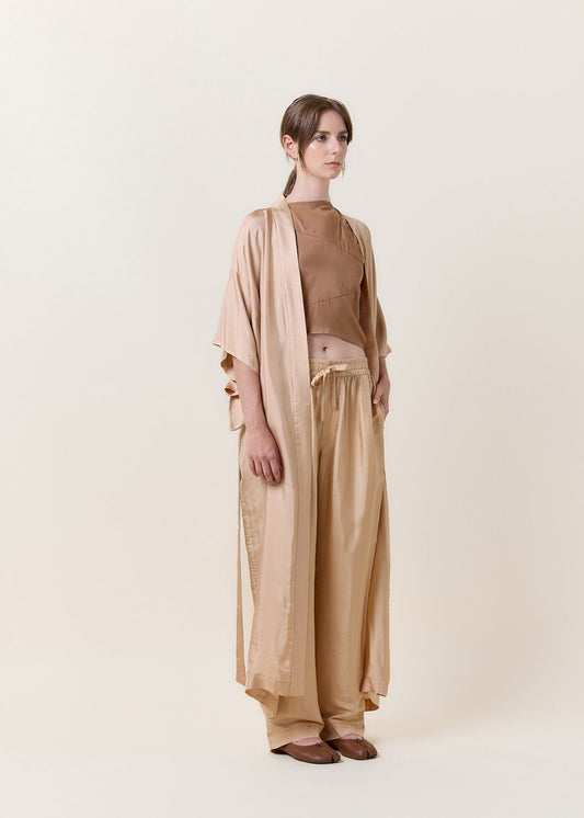 GammeCOLLECTIVE's silk kimonos robe collection is a luxurious addition to any wardrobe. Each piece is crafted from silk sourced from artisanal silk villages in Vietnam, ensuring that each robe is made from high-quality materials. The kimonos are produced responsibly in gammeCOLLECTIVE's studio, allowing customers to feel good about their purchase. This collection is unisex and also caters to plus-size individuals, providing a comfortable and stylish option for everyone. The attention to detail in each piece is evident in the stunning patterns and designs, making them a statement piece for any occasion. Whether you're lounging at home or dressing up for a special event, these silk kimonos will add a touch of elegance to any outfit. With GammeCOLLECTIVE's commitment to responsible production and high-quality materials, you can feel good about your purchase while looking and feeling your best.