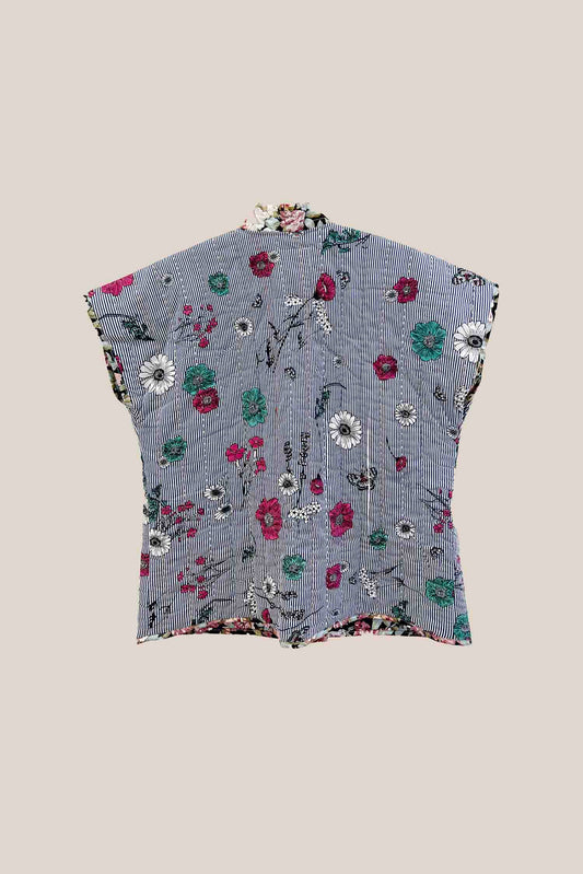 Sleeveless Floral Cotton Jacket – Hand-Quilted, Lightweight 3-Layer Design