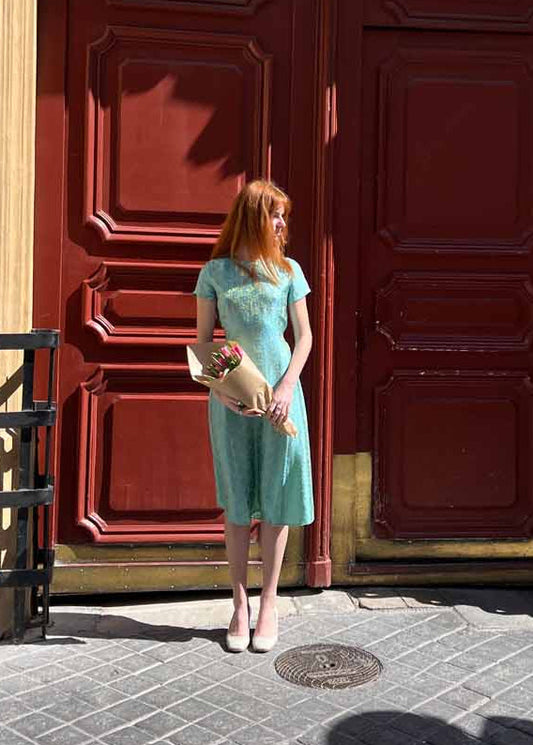 Mint Brocade Silk Dress RETRO
