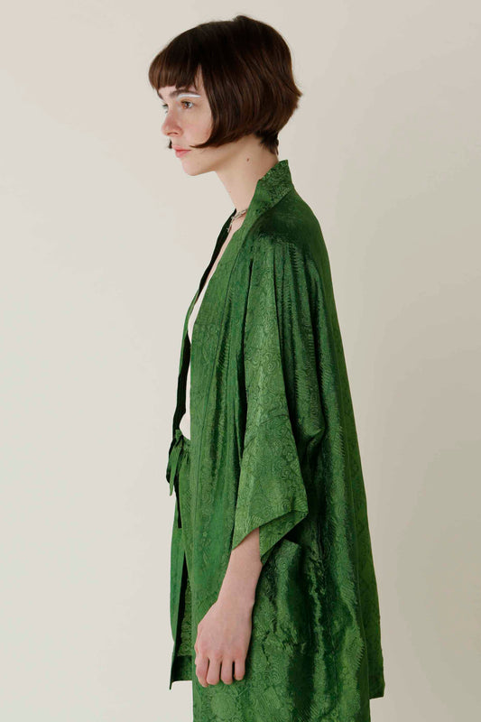 gammeCOLLECTIVE's signature kimono set is a beautiful and dynamic combination of comfort and style. Made from luxurious silk in Vietnam, this set is both comfortable to wear and visually stunning. The dynamic design features a unique pattern that is both modern and timeless, making it a versatile piece that can be dressed up or down. Whether you're lounging at home or attending a special event, this kimono set is the perfect choice for anyone who wants to look and feel their best. The comfortable fabric, combined with the stylish design, makes this set a true standout piece. Whether you're a fashion-forward trendsetter or simply looking for a touch of elegance in your wardrobe, the silk kimono set is the perfect choice.