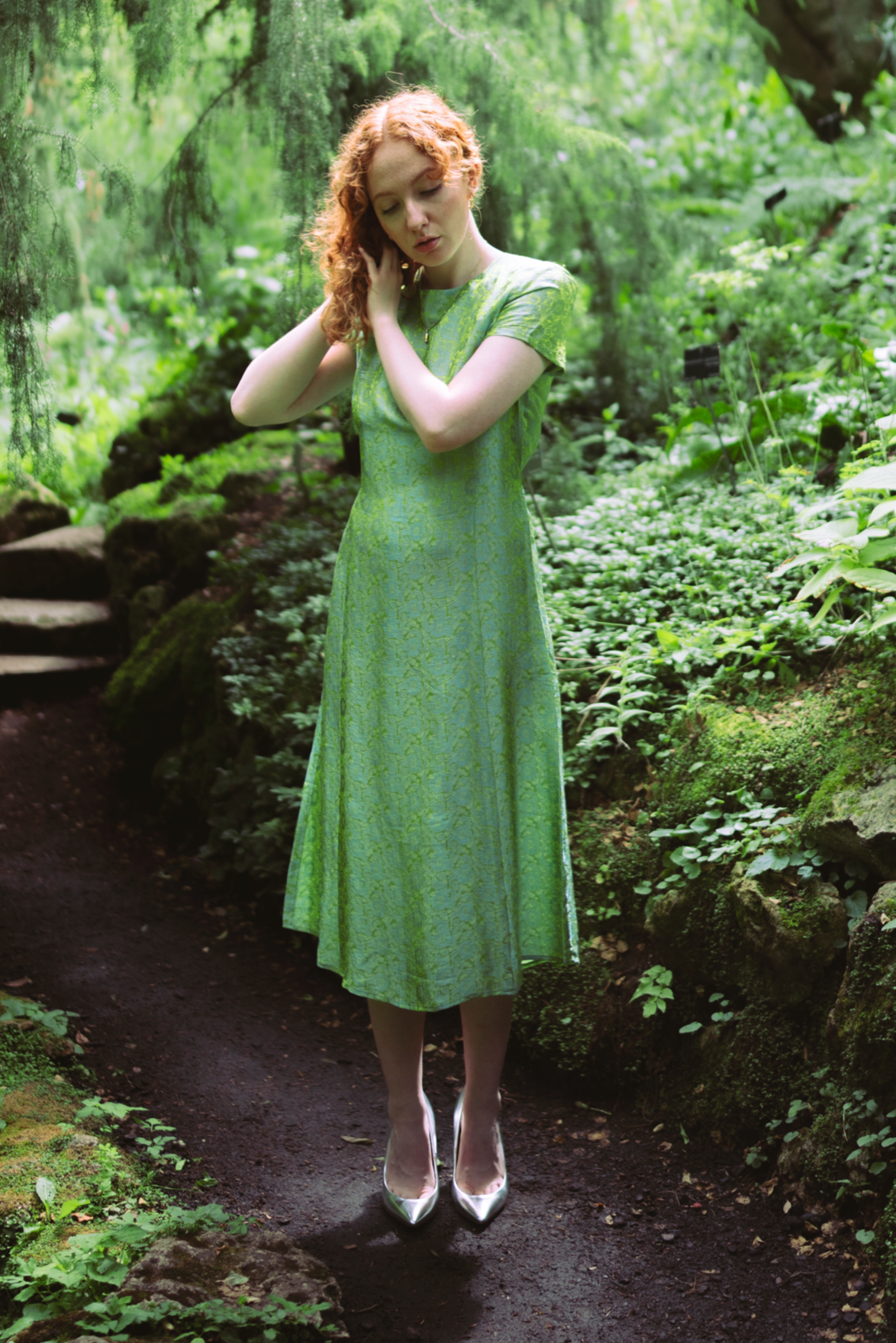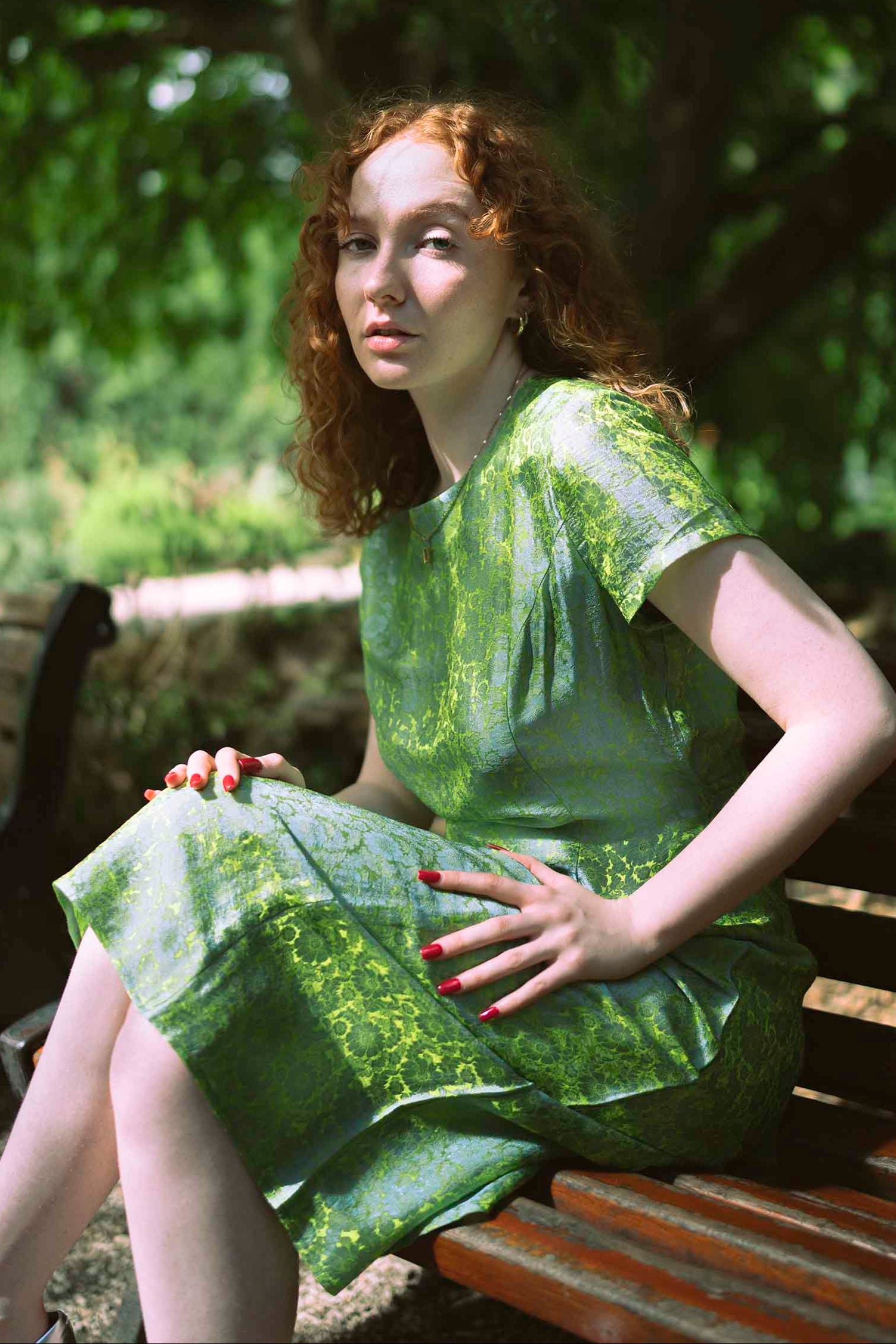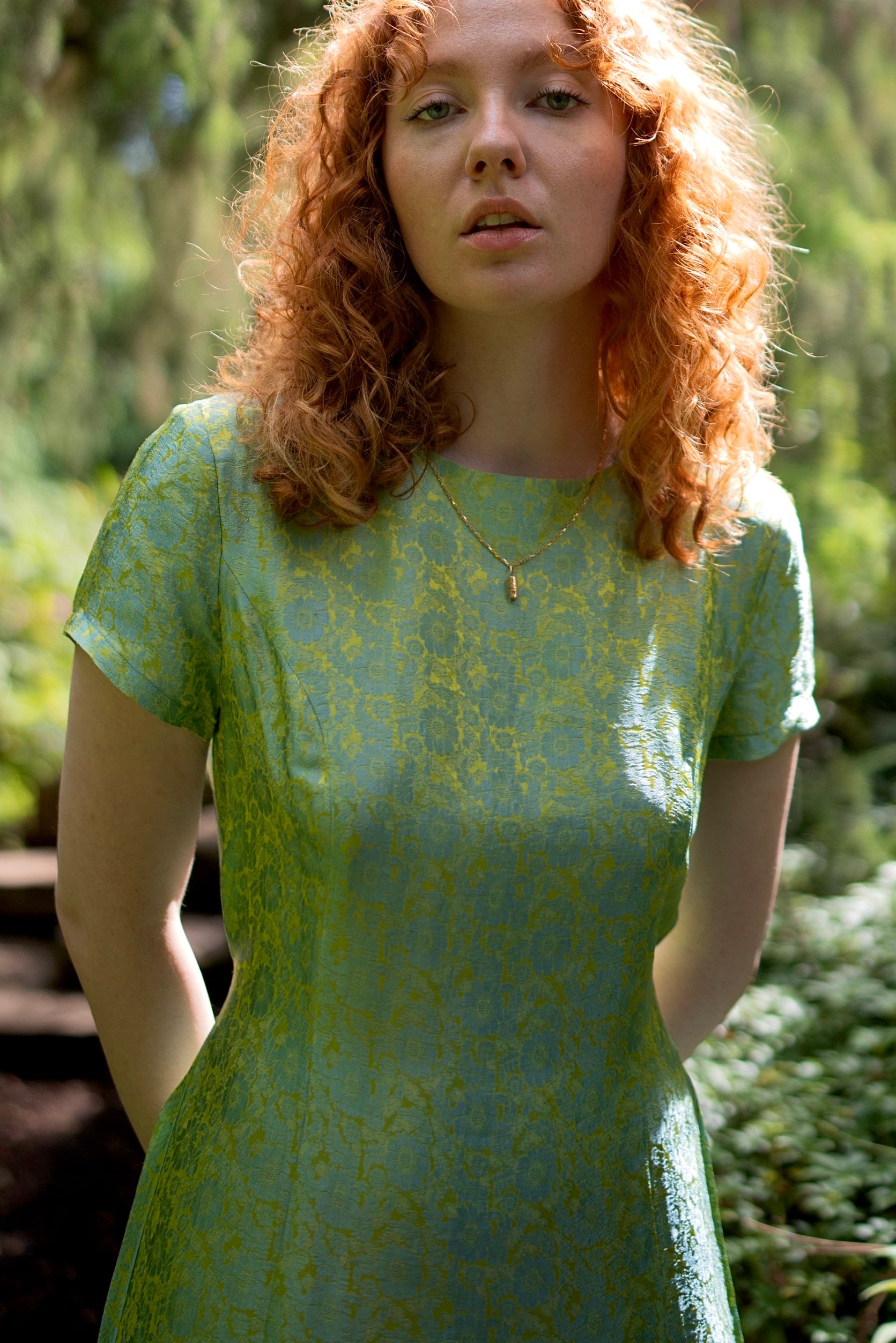 Our elegant silk dress is crafted from pure silk for a luxurious look. This silk formal dress features a chic round neck and short sleeves, punctuated by a long belt for a figure-flattering A-line silhouette and ribbon detail. As a formal silk dress, it effortlessly combines sophistication and style, making it perfect for any dress-code occasion. The flower silk dress design adds a delicate touch, enhancing its timeless appeal. Choose this round neck silk dress for an effortlessly sophisticated and elegant look.