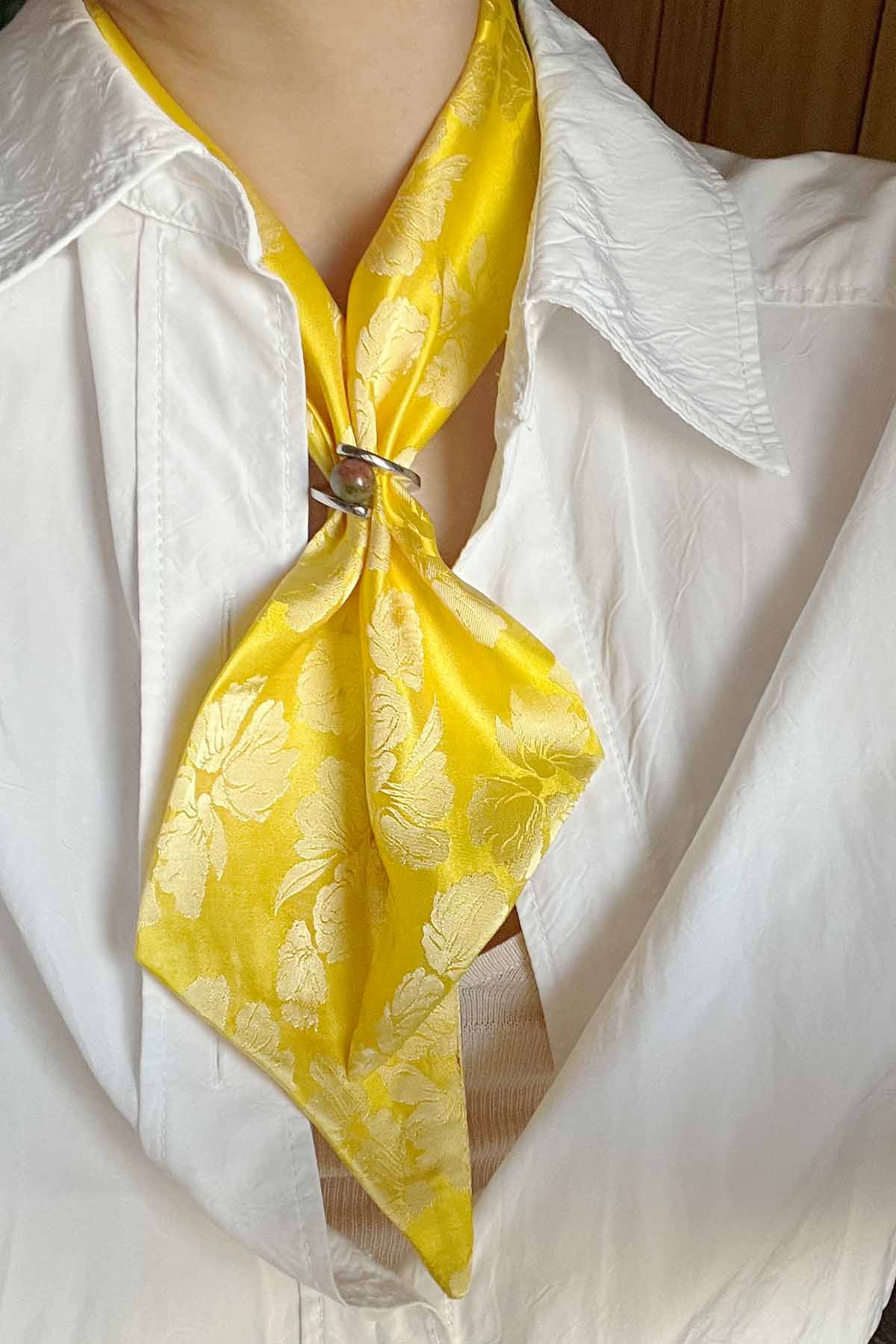 Whether you wear it around your neck as a handkerchief or as a ribbon with your farvorite handbag, the styling options are endless.