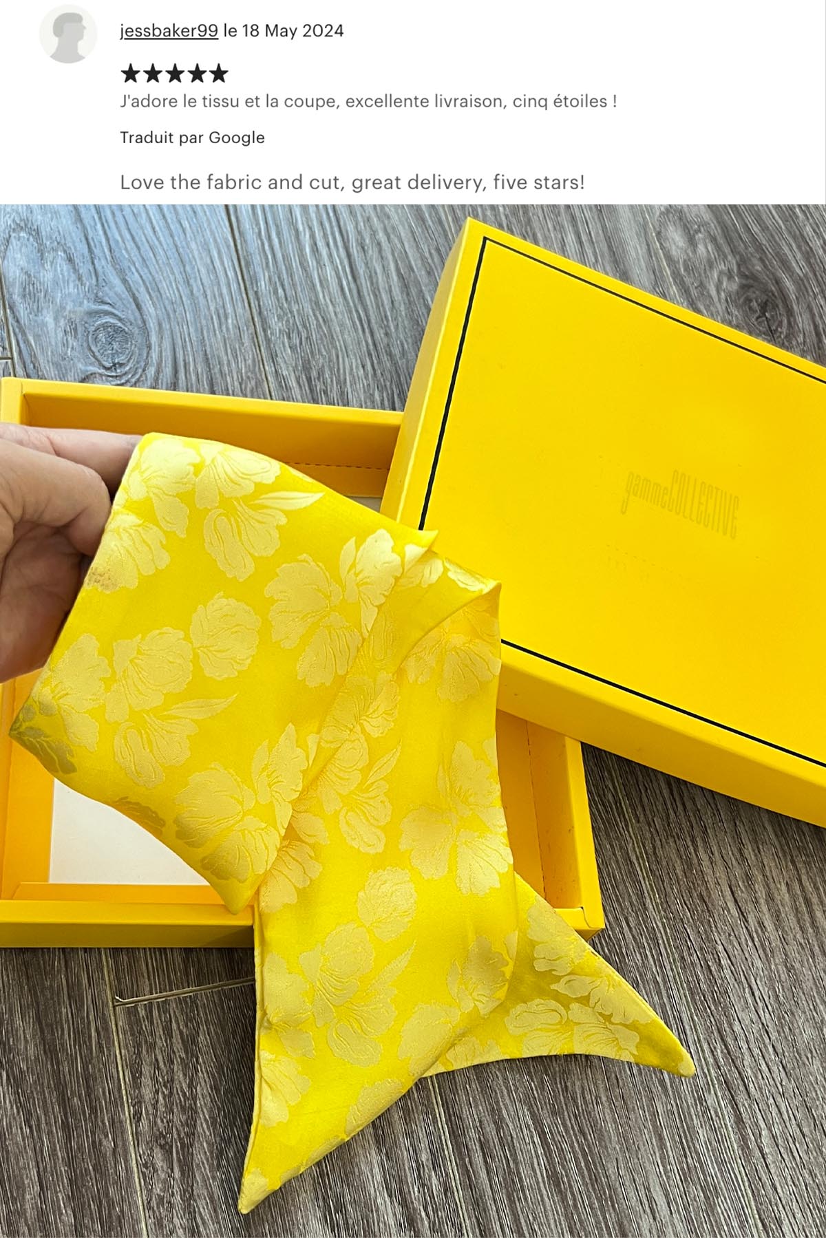 You will receive your scarf in its lovely envelope. After place an order , it usually takes 7-10 working days to prepare your goods in our studio in Paris before send our for delivery.